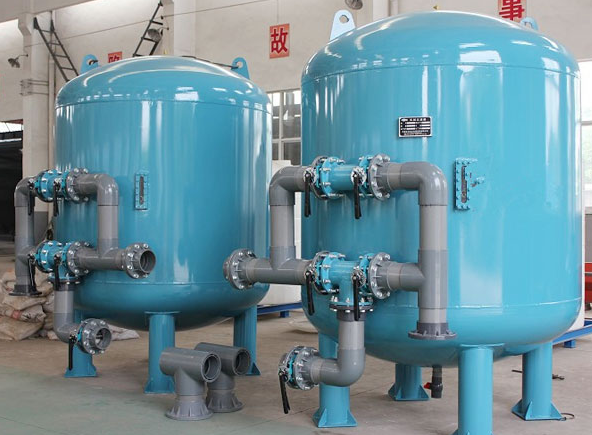 適宜成層狀的無煙煤、砂、細碎的石榴石或其他材料為床層構成。床的頂層有最輕和最粗品級材料構成,最重和最細品級的材料位于床層的底部。多介質過濾器一般是上方為入口開始過濾,下方為出口排出過濾后的水質。多介質過濾器的濾層設計濾料一般要考慮粒徑要求下層濾料粒徑小于上層濾料粒徑,以保證下層濾料的有效性和充分利用。上層的密度要小,以保證反洗之后分層復原。上層濾料起粗濾作用,阻力小,水頭損失下,下層濾料起精濾作用,截污能力強。